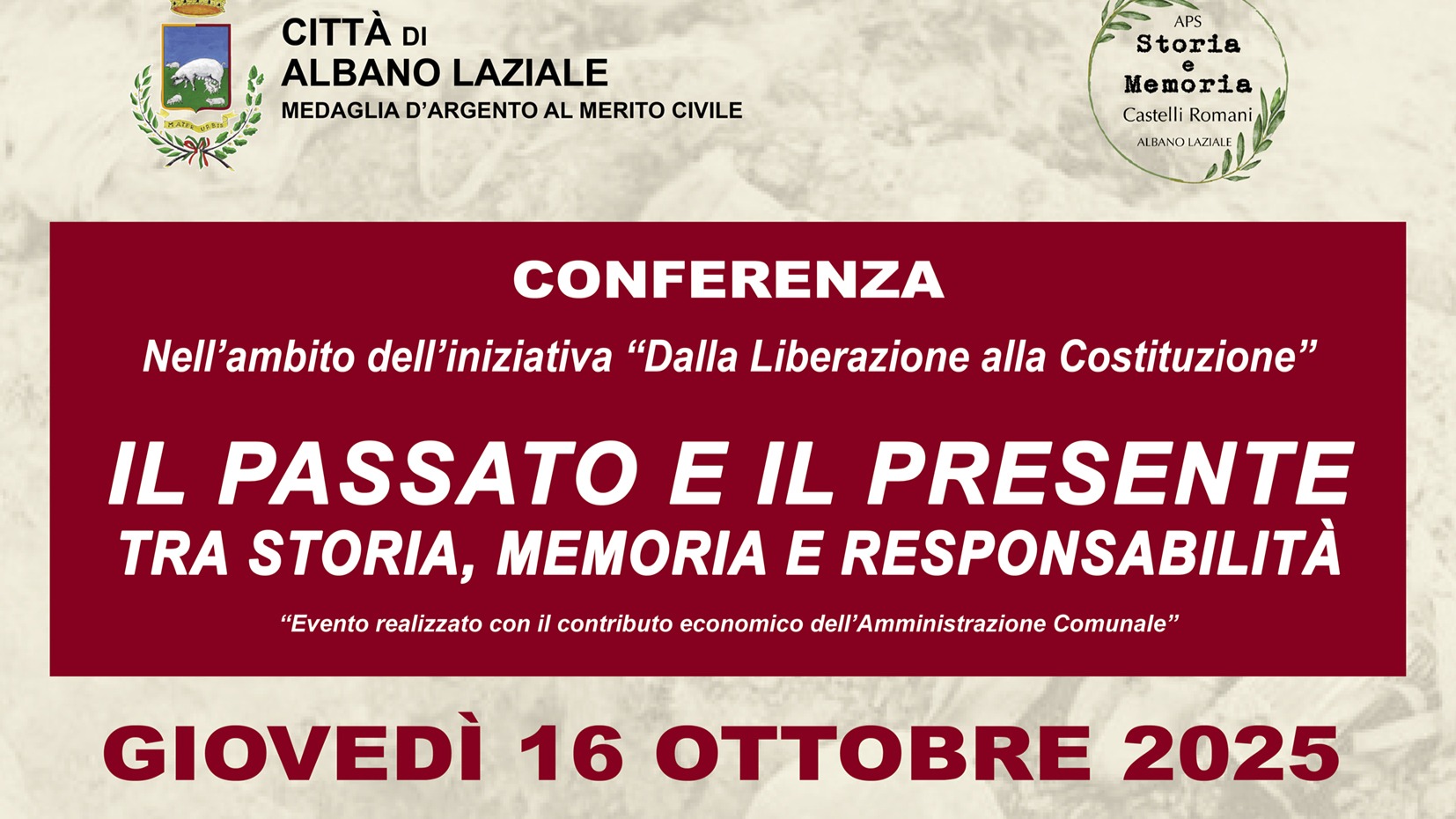 Conferenza pubblica il 16 ottobre 2025 a Palazzo Savelli per riflettere sul legame tra storia, memoria e Costituzione, con storici e studiosi di rilievo. Iniziativa promossa dal Comune di Albano Laziale.