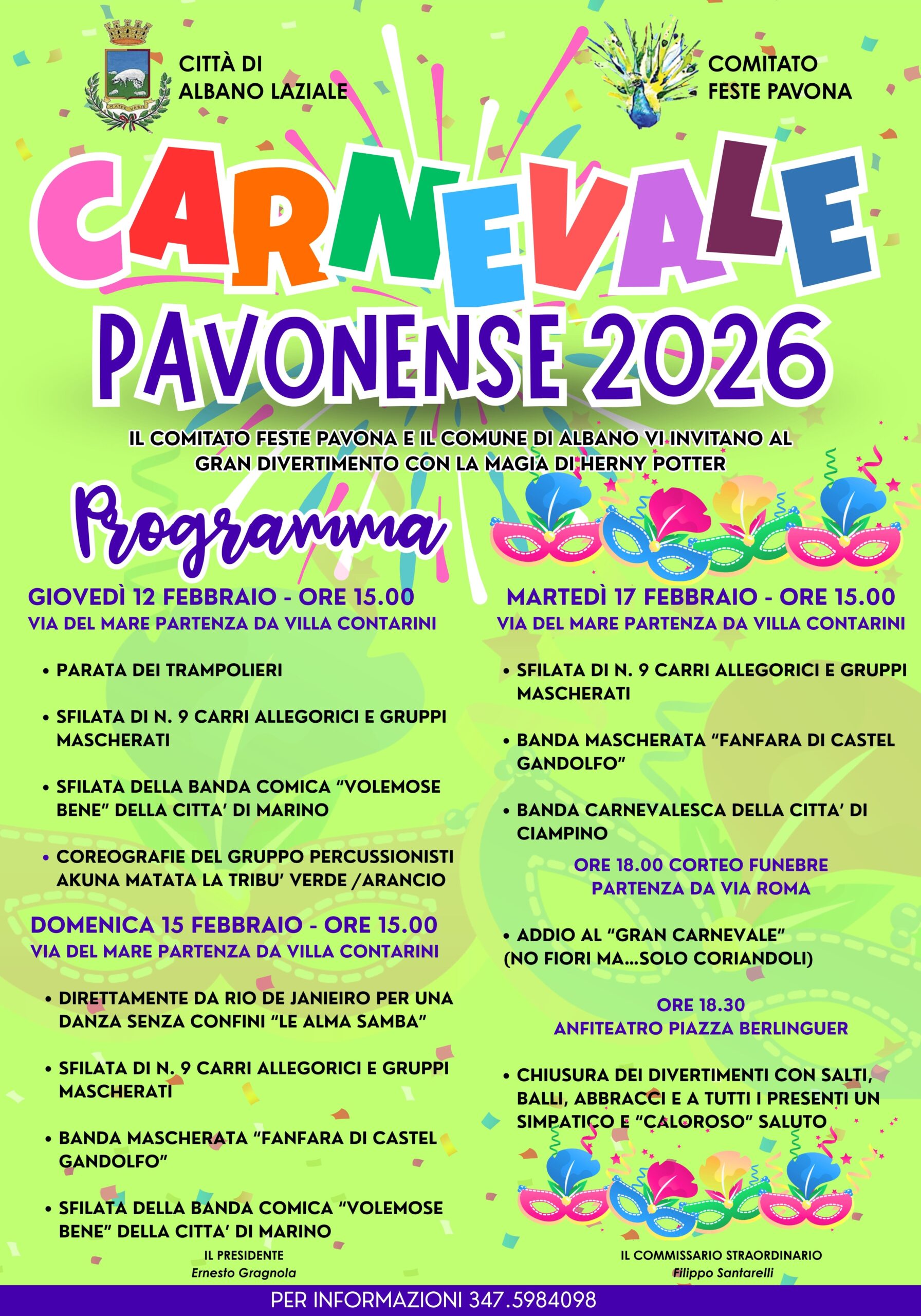 Giovedì 12 febbraio 2026 Pavona festeggia il giovedì di Carnevale con un programma pieno di musica e coriandoli.