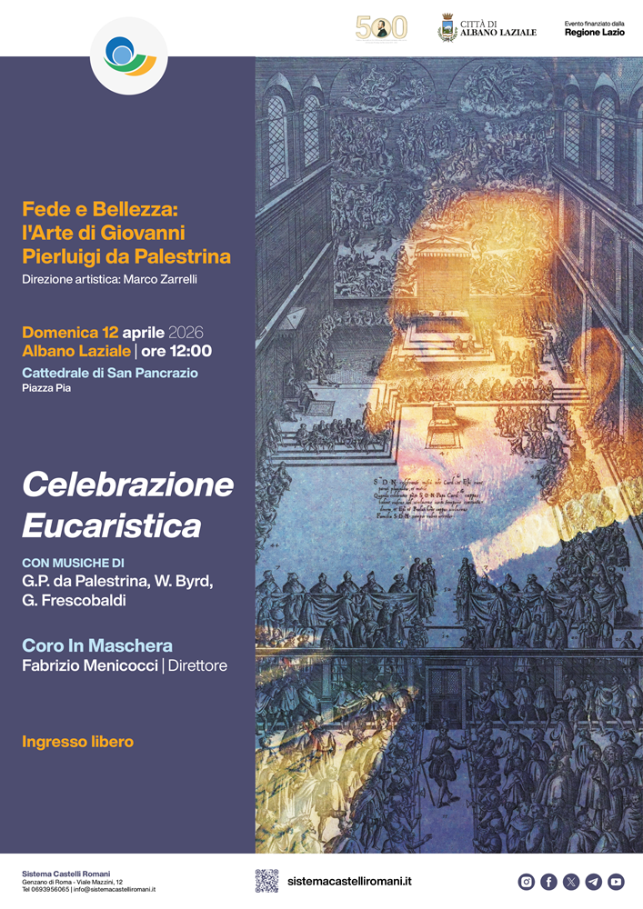 Il giorno 12 aprile 2026 alle ore 12.00 presso la Cattedrale di San Pancrazio, nell’ambito della rassegna “Fede e Bellezza: l’Arte di Giovanni Pierluigi da Palestrina”, Albano Laziale ospita una celebrazione eucaristica con musiche dei maestri rinascimentali Giovanni Pierluigi da Palestrina, William Byrd e Girolamo Frescobaldi.