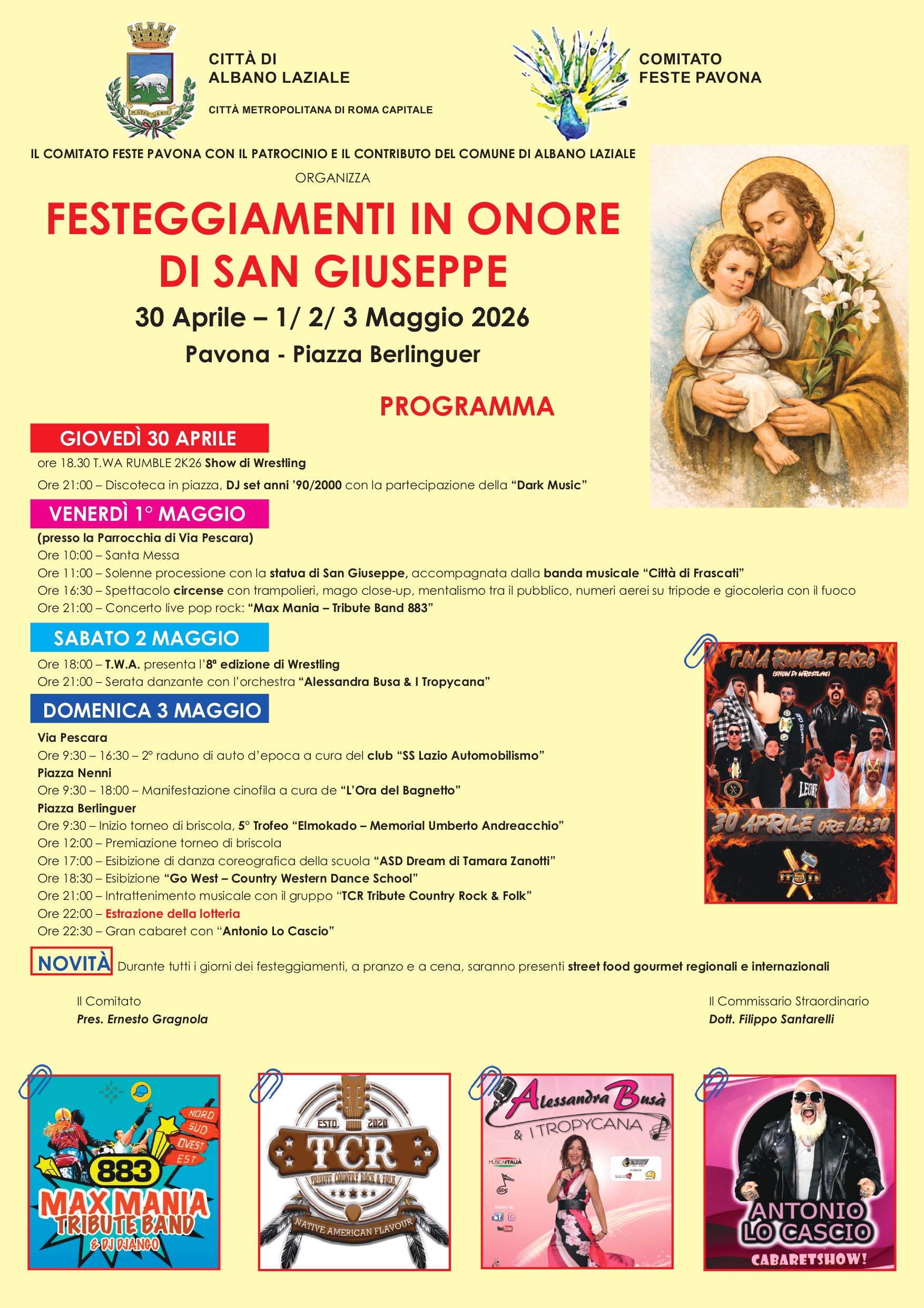 Il Comitato Feste Pavona, con il patrocinio del Comune di Albano Laziale, è lieto di presentare l'edizione 2026 dei festeggiamenti in onore di San Giuseppe.