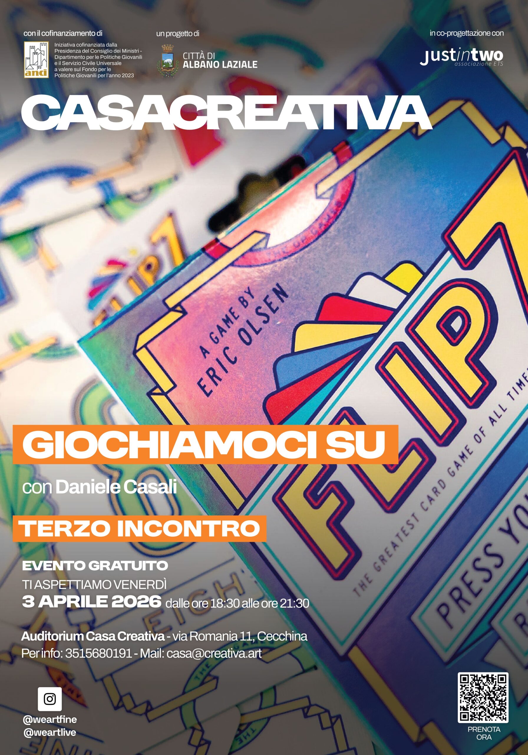 Venerdì 3 aprile, dalle 18.30 alle 21.30, Casa Creativa ospiterà un nuovo incontro di “Giochiamoci su”, in compagnia di Daniele Casali, presidente de La Gilda degli Avventurieri.