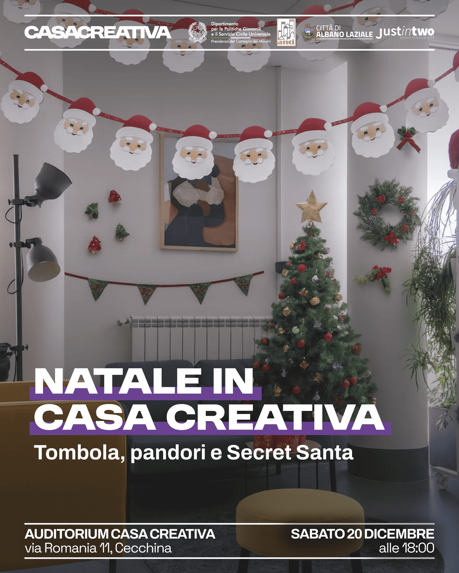 Sabato 20 dicembre alle 18:00 l’Auditorium di Casa Creativa apre le porte per “Natale in Casa Creativa”, un appuntamento speciale pensato per vivere il Natale come momento di incontro, leggerezza e comunità.