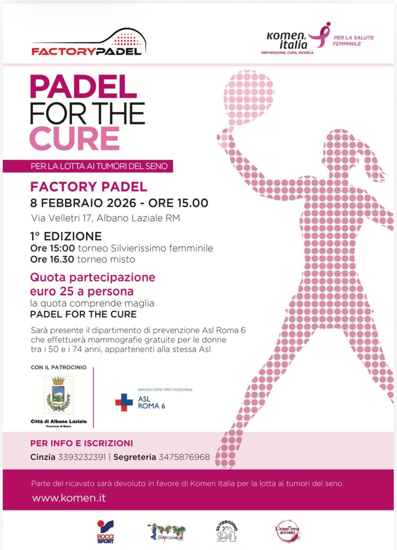 Parte del ricavato sarà devoluto in favore di Komen Italia per la lotta ai tumori al seno.