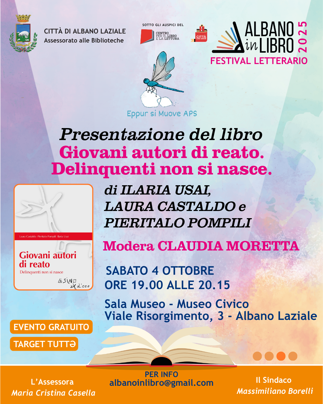In occasione del Festival Letterario Albano In Libro 2025, la Sala Museo del Museo Civico ospita la presentazione del libro “Giovani autori di reato. Delinquenti non si nasce.” (Ed. L’Asino d’oro), a cura di Eppur si Muove APS.